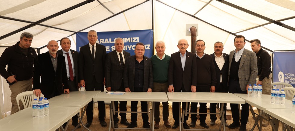 Çadırları ziyaret eden Genel Başkan Kılıçdaroğlu ve Ekrem İmamoğlu, depremzedelere geçmiş olmuş dileklerini ileterek, sorunlarını dinledi. Kılıçdaroğlu ve İmamoğlu, çocuklara oyuncak ve kitap seti dağıttı. Millet İttifakı’nın 13. Cumhurbaşkanı adayı ve CHP Genel Başkanı Kemal Kılıçdaroğlu ve beraberindeki heyet, Antalya Büyükşehir Belediyesi’nin kurduğu sabit aşevinde yemek sırasına girerek, depremzedelerle birlikte yemek yedi, Çocuklara yakın ilgi gösteren Kılıçdaroğlu, bir çocuğa Atatürk’ün nutuk kitabını hediye ederek, imzaladı.