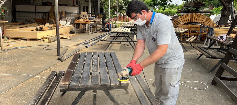 Zamanla deforme olan ve kırılan piknik masalarında onarım ve yenileme çalışmaları yapan belediye ekipleri, masalarda zımpara ve vernik işlemleri de gerçekleştiriyor.