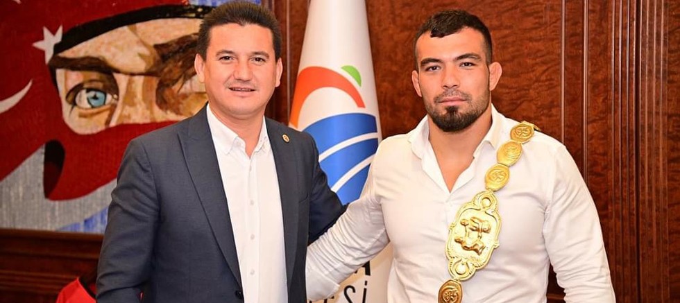 662. Tarihi Kırkpınar Yağlı Güreşleri'nin Başpehlivanı Yusuf Can Zeybek, final rakibi İsmail Balaban, Elmalı Belediye Başkan yardımcısı ve Antalya Büyükşehir güreş koordinatörü Hasan Aydın ile birlikte Kumluca Belediye Başkanı Mustafa Köleoğlu’nu makamında ziyaret etti. Başkan Köleoğlu Başpehlivan Yusuf Can Zeybek’e ve İsmail Balaban’a altın hediye etti.