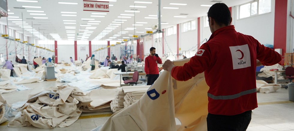 Kızılay’ın Ankara ve Erzincan’da bulunan çadır üretim fabrikalarında deprem bölgesi için mesai sürüyor. Kızılay yaklaşık 550 işçi ile her gün 500’e yakın çadır üreterek afet bölgesinde AFAD emrine gönderiyor.