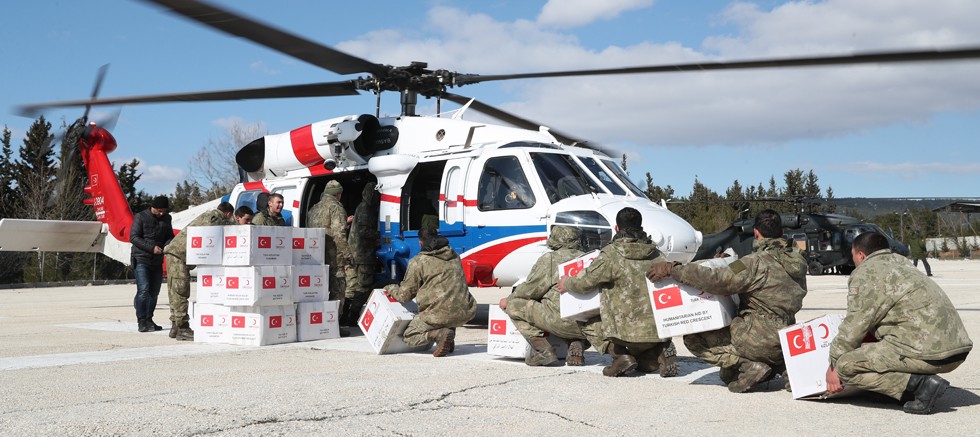 Kızılay hem mevsim şartları hem de depremin etkisiyle ulaşım güçlüğü çekilen köylere havadan ve karadan yardım ulaştırmayı sürdürüyor. Evleri hasar gördüğü için soğuk havaya rağmen dışarıda kalan vatandaşlar için gıda kolileri hazırlayan Kızılay, bu yardım malzemelerini TSK’nın tahsis ettiği helikopterlerle ve Mehmetçiğin desteği ile köylere ulaştırıyor.