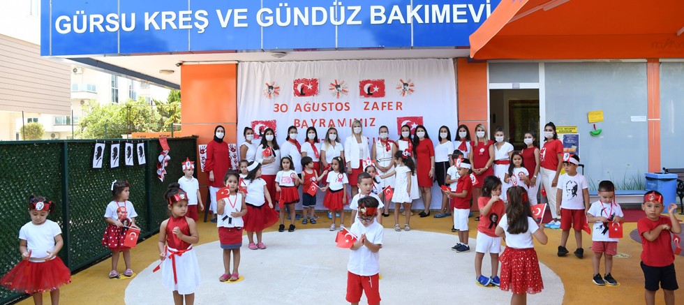 Konyaaltı Belediyesi Gürsu Kreş ve Gündüz Bakımevi’nin minik öğrencileri, Başkomutan Mustafa Kemal Atatürk önderliğindeki Türk ordusunun, işgalci Yunan kuvvetlerine karşı büyük bir zafer elde ettiği Büyük Taarruz’un 98'inci yıldönümü ve 30 Ağustos Zafer Bayramı’nı coşkuyla kutlandı.