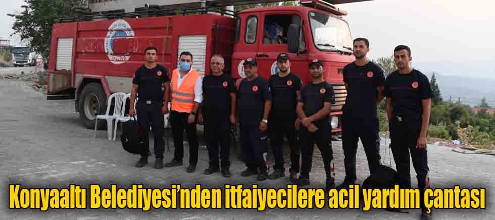Konyaaltı Belediyesi, Antalya’da devam eden orman yangınlarına canla başla müdahale eden itfaiyecilere yangına dayanıklı malzemelerin bulunduğu acil yardım çantası dağıttı.