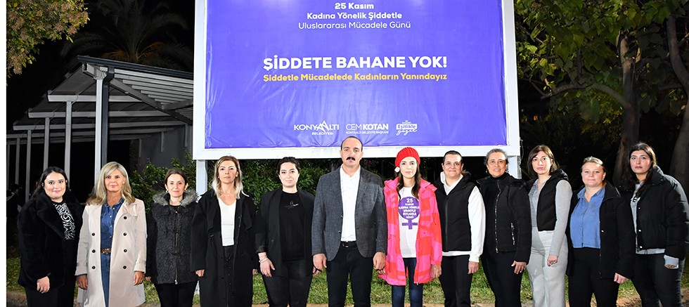 Konyaaltı Belediyesi, Kadına Yönelik Şiddete Karşı Uluslararası Mücadele Günü kapsamında,şiddeti haklı göstermek için kullanılan bahaneleri bilboardlara taşıdı. Konyaaltı Belediye Başkanı Cem Kotan ve belediyede çalışan kadınlar, sokağa çıkıp bahaneleri söküp attı; “Şiddete Bahane Yok” mesajı verdi.