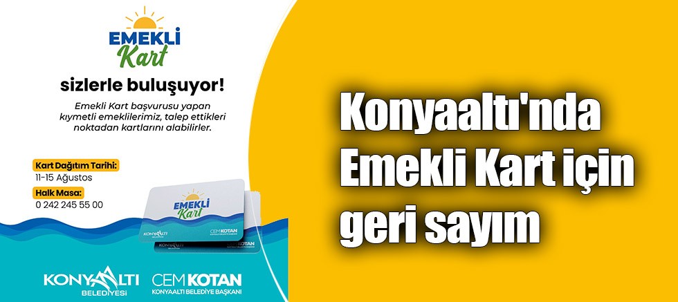 Konyaaltı Belediyesi, emekli vatandaşlara yönelik başlattığı destek projelerine ‘Emekli Kart’ uygulamasıyla devam ediyor. Bir süredir hazırlıkları süren ve yerel esnafla yapılan görüşmeler sonucunda şekillenen proje, ilçede yaşayan emeklilere hem ekonomik hem de sosyal katkılar sunmayı hedefliyor. Emeklilere özel hazırlanan ‘Emekli Kart’, 11-15 Ağustos tarihleri arasında HayatPark, Gürsu ve Siteler Emekli Kahveleri ve Konyaaltı Belediyesi Halkla İlişkiler birimlerinden teslim alınabilecek. Kartlarını teslim alan emekliler, 15 Ağustos’tan itibaren Konyaaltı sınırları içindeki belediye anlaşmalı çeşitli işletmelerde, hizmetlerden indirimli olarak faydalanabilecek