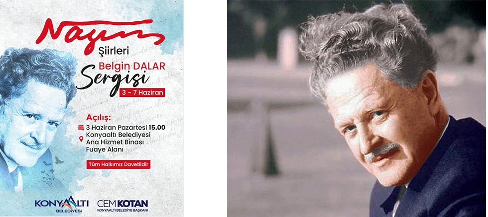Etkinlik kapsamında Belgin Dalar’ın “Nazım Şiirleri Sergisi” açılacak. Konyaaltı Belediyesi Ana Hizmet Binası Fuaye Alanı’nda 3 Haziran Pazartesi günü saat 15.00’te açılacak sergide ressam Dalar’ın usta şair Nazım Hikmet’in şiirlerinden yola çıkarak hazırladığı resimler yer alacak.
