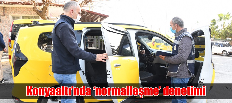 Konyaaltı Belediyesi Zabıta Müdürlüğü ekipleri, ‘kontrollü normalleşme’ sürecinde taksilerde maske, sosyal mesafe ve temizlik uygulamalarını denetliyor.
