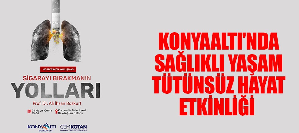 Konyaaltı Belediyesi 31 Mayıs Dünya Tütünsüz Günü kapsamında “Sağlıklı Yaşam Tütünsüz Hayat” etkinliği düzenliyor. Etkinlik kapsamında Prof. Dr. Ali İhsan Bozkurt, “Sigarayı Bırakmanın Yolları” konulu bir söyleşi gerçekleştirecek.