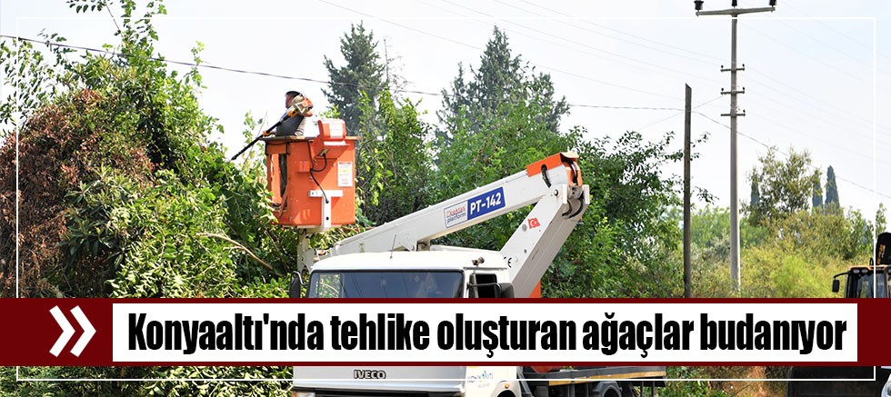 Konyaaltı’nda orman yangınlarının oluşumuna zemin hazırladığı gerekçesiyle elektrik tellerine değen ağaçların budama işlemi hızla sürdürülüyor. Konyaaltı Belediye Başkanı Cem Kotan’ın talimatıyla ekipler, mahallelerde tehlike arz eden ağaçları buduyor.