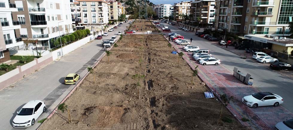 İlçe genelinde yaptığı çalışmalarla kişi başına düşen yeşil alan miktarını her geçen gün artıran Konyaaltı Belediyesi, yeni bir park inşaatının startını verdi. Hurma Mahallesi 295 Sokak üzerinde, 252-295 sokakların kesişiminde 3 bin 396 metrekare, 295-249 sokakların kesişiminde 2 bin 571 metrekare olmak üzere toplamda 5 bin 967 metrekarelik alanda devam eden çalışmada şu ana kadar otomatik sulama sistemi döşemesi ve birbirine uyumlu ağaçların dikilme işlemleri tamamlandı. Hava şartlarının uygunluğunu gözeterek çim tohumlarının ekilmesiyle park alanının peyzaj düzenlemesi sona erecek.