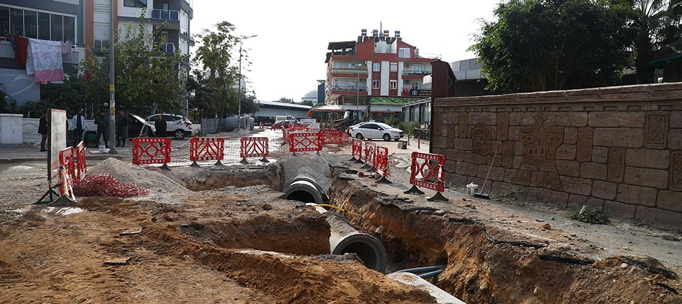 Antalya Büyükşehir Belediyesi, şiddetli yağışlarda sorun yaşanan Konyaaltı İlçesi Pınarbaşı Mahallesi’nde yağmur suyu drenaj hattı çalışması yapıyor.