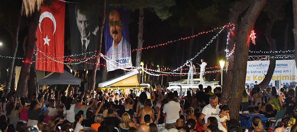 Konyaaltı Belediyesi yaz aylarında vatandaşları spor ve sanat etkinlikleriyle buluşturmaya devam ediyor. HayatPark’ta gerçekleştirilen Konyaaltı Yaz Konserleri’nde vatandaşlar “VO Sahne”nin konseri ile eğlencenin tadını çıkardı. Etkinliğe Konyaaltı Belediye Başkanı Cem Kotan, eşi Demet Ayne Kotan ve oğlu Canali Kotan ile birlikte katıldı.