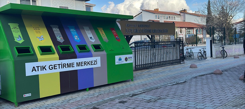 Korkuteli Belediyesi Çevre Koruma ve Kontrol Müdürlüğü ekipleri tarafından "Sıfır Atık" ve "Geri Dönüşüm" konusunda farkındalık oluşturmak ve atık türlerinin ayrı toplanmasını sağlamak amacıyla ilçenin çeşitli noktalarına “Mobil Atık Getirme Merkezi” yerleştirildi.