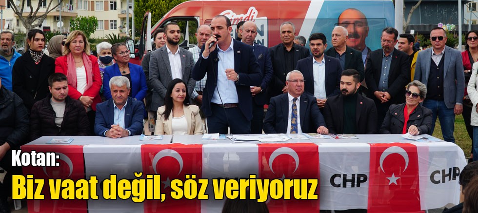 30 yıldır Antalya’da yaşadığını ve Konyaaltı aşığı olduğunu dile getiren Kotan, Konyaaltı’nın yönetim ve eğitim seviyesinin yüksek bir standardı olduğunu, meclis adaylarını bu standardı hedefleyerek belirlediklerini söyledi. Bir ekip olarak halkın karşısına geçtiklerini vurgulayan Cem Kotan, “Biz size vaatte bulunmuyoruz, yapacaklarımızı anlatıyoruz. Biz size siyaset, politika yapmıyoruz; biz belediyede yapacağımız hizmetleri anlatıyoruz. Size vaat değil söz veriyoruz” dedi.