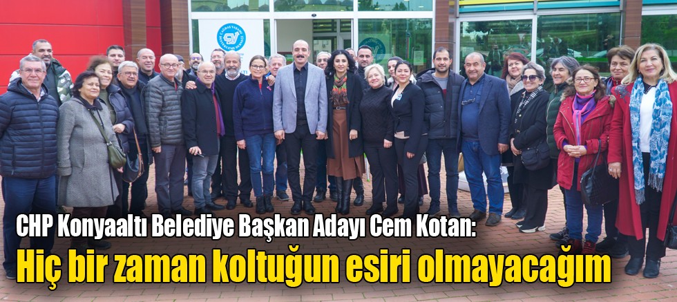 Cumhuriyet Halk Partisi (CHP) Konyaaltı Belediye Başkan Adayı Cem Kotan, göreve seçildikten sonra her zaman halkın içerisinde, sokakta, pazarda, markette olacağını belirterek, "Hiç bir zaman kendi kabuğuma çekilmeyeceğim, o koltuğun esiri olmayacağım" dedi.