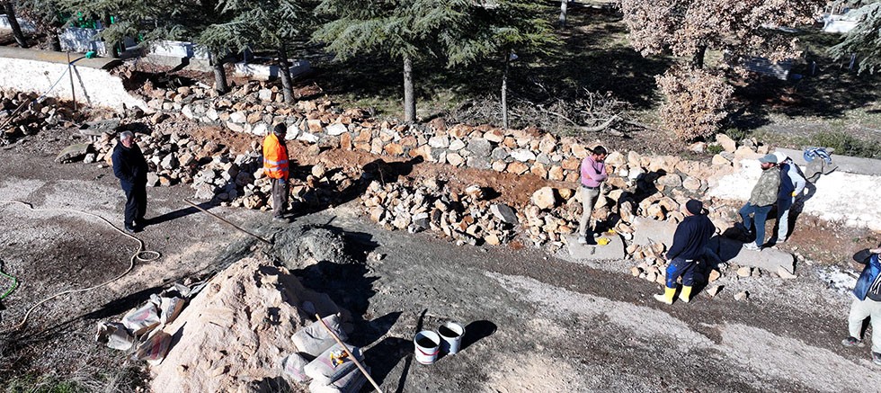 Yapılan çalışmalarda Kozluca köyünde bir bölümü yıkılan mezarlık duvarı yeniden yapıldı.