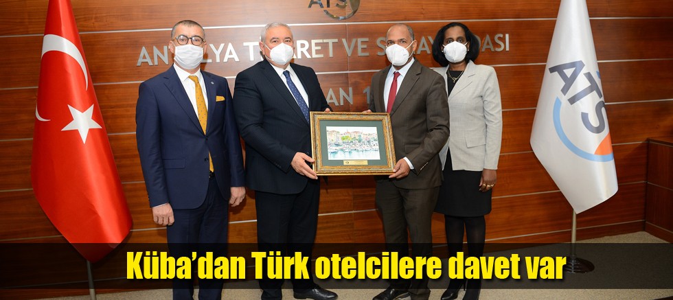 Antalya Ticaret ve Sanayi Odası (ATSO) Başkanı Davut Çetin, Küba Cumhuriyeti Ankara Büyükelçisi Luis Alberto Amorós Nunez ve Küba Ticaret Ataşesi de olan eşi Ileana Nunez’i konuk etti. ATSO Yönetim Kurulu Üyesi Mustafa Ayanoğlu’nun da bulunduğu ziyarette, Antalya ve Küba arasındaki ticarette ciddi bir potansiyel olduğu, ama halihazırdaki ihracat-ithalat rakamlarının bu potansiyeli yansıtmadığı belirtilerek, karşılıklı işbirliği olanakları görüşüldü.