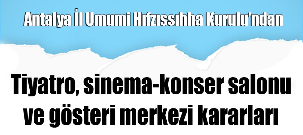 İl Umumi Hıfzıssıhha Kurulu'nca, tiyatro, sinema, konser salonu ve gösteri merkezi gibi kültür-sanat tesisleriyle ilgili alınan karar şöyle: