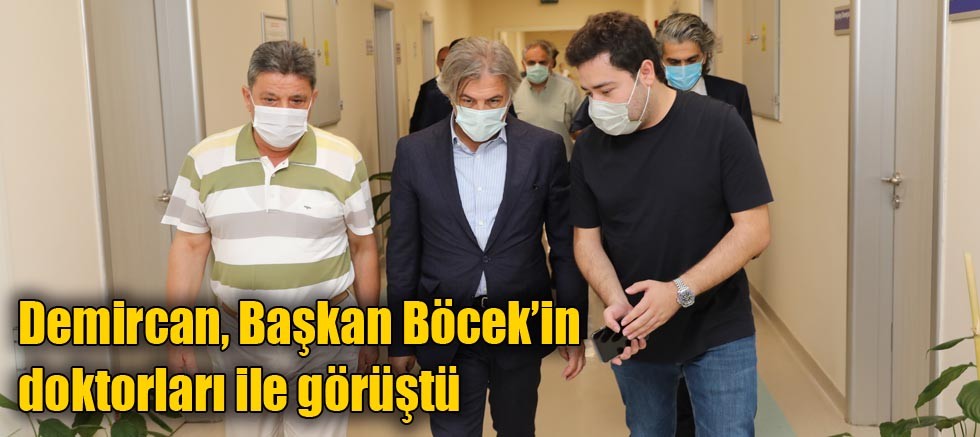 Kültür ve Turizm Bakan Yardımcısı Ahmet Misbah Demircan ve Antalya Valisi Ersin Yazıcı Akdeniz Üniversitesi Hastanesi’ni ziyaret ederek Antalya Büyükşehir Belediye Başkanı Muhittin Böcek’in tedavi süreci hakkında doktorlardan bilgi aldı. Başkan Böcek’in ağabeyi Şadi Böcek ve oğlu Gökhan Böcek tarafından karşılanan Demircan, Başkan Böcek’in doktorları ile görüştü. Demircan, “Hekimlerimiz olaya vakıf ve sürecin giderek iyiye gittiğini onlardan da duymuş olduk” diye konuştu.