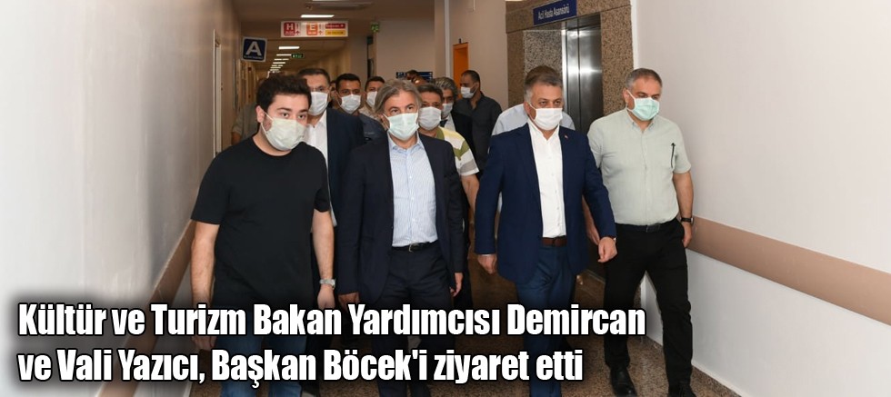 Vali Ersin Yazıcı ile Kültür ve Turizm Bakan Yardımcısı Ahmet Misbah Demircan, Antalya Büyükşehir Belediye Başkanı Muhittin Böcek’in tedavisinin devam ettiği Akdeniz Üniversitesi Hastanesi'ne giderek Başkan böcek hakkında başhekimden bilgi aldı.
