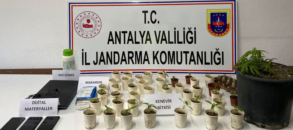 Antalya Valiliği İl Jandarma Komutanlığı ekiplerinin uyuşturucu madde imalatı ve ticaretine yönelik sürdürdüğü başarılı çalışmalar devam ediyor. Yapılan çalışmalar sonucu elde edilen bilgiler doğrultusunda harekete geçen jandarma ekipleri, 45 kök hint keneviri ve 92 adet boş makaron ele geçirildi.