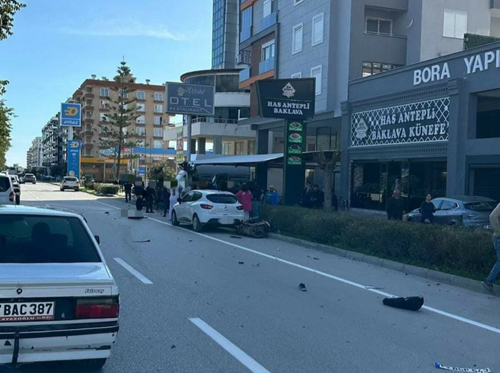 S.S.'nin (17) ehliyetsiz olarak kullandığı 07 BGP 453 plakalı araç, Kumluca Deniz Yolu Caddesi'nde Gülnihal Alkan'ın kullandığı elektrikli bisiklet ile çarpıştı.