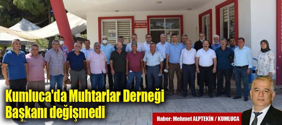 Yapılan seçimler sonucunda, Kumluca Muhtarlar Derneği Başkanlığı'na Eski Cami Mahalle Muhtarı İbrahim Songur, yeniden seçildi. Yönetim Kurulu Üyeliklerine ise; Beykonak Mahalle Muhtarı Ramazan Selçuk, Belen Mahalle Muhtarı Hasan Acar, 50. Yıl Mahalle Muhtarı Memiş Aydın, Temel Eğitim Mahalle Muhtarı Cahit Benli, Mavikent Mahalle Muhtarı Adem Karataç ve Yeni Kışla Mahalle Muhtarı Hüsnü Canıtez getirildi.