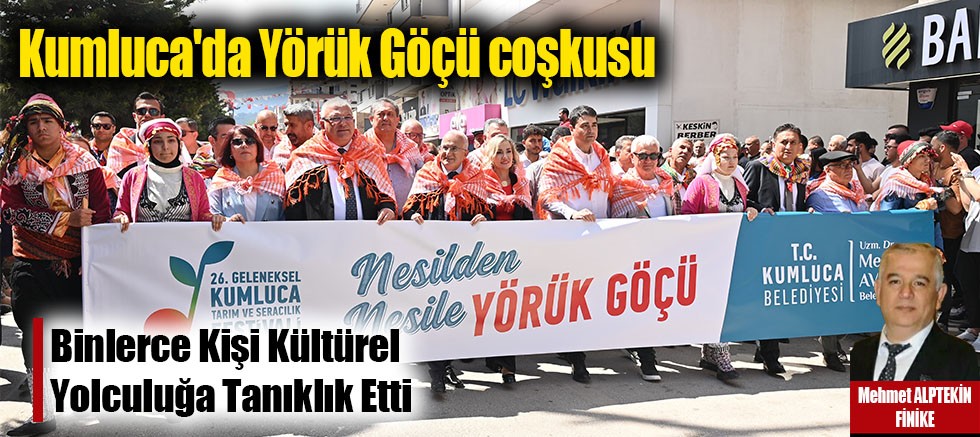Kumluca, 26. Geleneksel Tarım ve Seracılık Festivali kapsamında düzenlenen Temsili Yörük Göçü etkinliğiyle kültürüne, tarihine ve köklerine sıkı sıkıya sarıldı. Gödene Caddesi’nden başlayan ve Orhan Okulu Caddesi’ndeki Yörük Obalarına kadar uzanan yürüyüşte geleneksel Yörük Kültürü yeniden canlandırıldı.