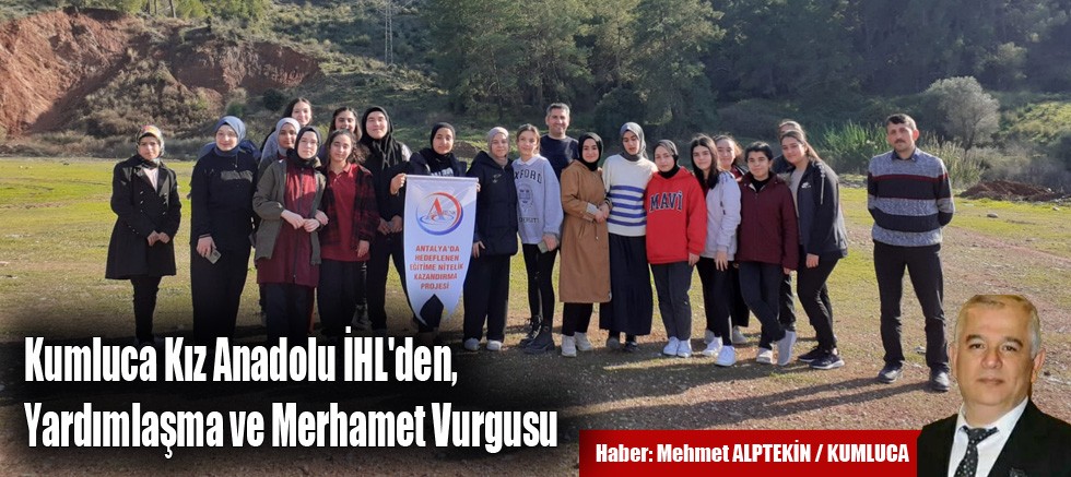 Antalya Valiliği'nce Antalya ve İlçelerinde yürütülmekte olan AHENK Projesi - Değerler Eğitimi kapsamında bir etkinliğe daha imza atan Kumluca Kız Anadolu İmam Hatip Lisesi 10/B sınıfı öğrencileri, öğretmenleriyle birlikte yürütmekte oldukları "Cezalandırma, Ödüllendir!" etkinliği gerçekleştirildi. Öğrenciler harçlıklarından arttırmış oldukları parayla, barınakta bulunan hayvanlar için, kuru mama alarak, Veteriner gözetiminde. bu mamaları barınak hayvanlarıyla buluşturdular. Kumluca Belediyesi'nde görevli Veteriner Hekim Sinan Ulusoy, barınakta bulunan hayvanların genel bakımları ve yaşamları hakkında, öğrencileri bilgilendirdi. Bu projeyle öğrenciler, değer kavramlarımızdan olan "Yardımlaşma“ ve "Merhamet“e dikkat çekmek istediler.