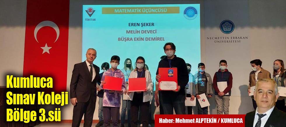 12 farklı kategoride projelerin yarıştığı sergide, üç gün sergilenen projeler sergi boyunca akademisyenlere yapılan sunumlar ile değerlendirildi. Kumluca Sınav Koleji 10. Sınıf Fen Lisesi öğrencileri Melih Deveci, Eren Şeker, Büşra Ekin Demirel’in Matematik Öğretmeni Sercan Çömlek’in danışmanlığında yapmış oldukları proje, sergide büyük beğeni topladı. Proje konusunda öğrenciler bir üçgenin etrafına kareler çizerek merkezlerini birleştirdiler ve oluşan yeni üçgenin, başlangıç üçgeni ile arasında dört yeni özellik keşfettiler. Üçgene isimlerinin baş harflerini veren öğrencilerin projesi, Konya Bölge sergisinde üçüncülüğü elde etti. Öğrenciler, TÜBİTAK tarafından para ödülü, başarı belgeleri ve çeşitli hediyelerle ödüllendirildiler.