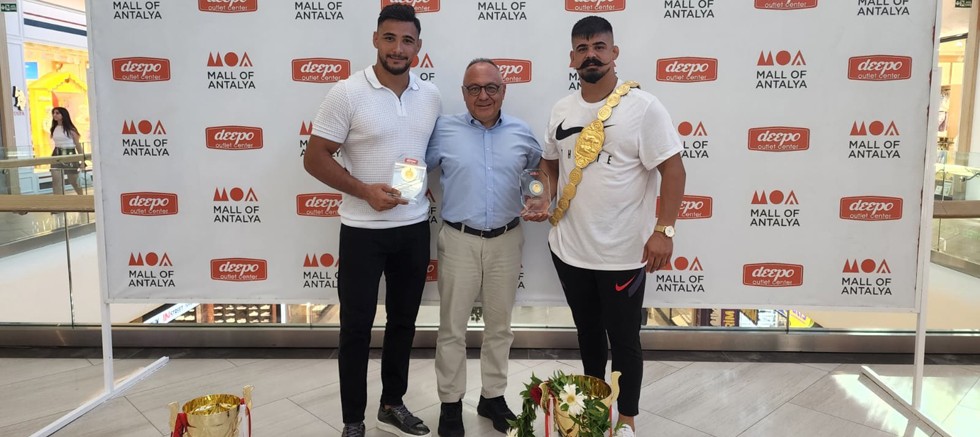Torunlar GYO’ya bağlı bulunan Akdeniz’in ve Antalya’nın en büyük AVM’si Mall Of Antalya ve Deepo Outlet Center Müdürü Sayın Cem LİVANELİOĞLU tarafından altın kemer sahibi BAŞPEHLİVAN Cengizhan ŞİMŞEK ve 2.lik kürsüsüne çıkan Mustafa TAŞ’ a tebrik plaketi ve ödülleri takdim edildi.