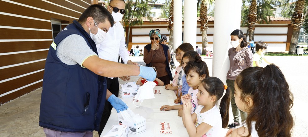 Manavgat Belediyesi, bugün 11.00-15.00 saatleri arasında kısıtlaması kaldırılan çocukların gönül rahatlığı ile sokağa çıkabilmeleri için hem parkları dezenfekte ettirdi hem de maske dağıtarak, Kontrollü Sosyal Hayata alışmalarına yardımcı oldu.