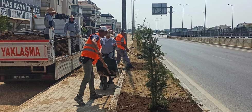 Manavgat Belediyesi Park ve Bahçeler Müdürlüğü ekipleri, Eski Hisar Mahallesi D-400 Karayolu kenarında, belediyenin imar sınırları içerisinde yer alan refüj alanlarında düzenleme çalışmalarını titizlikle sürdürüyor.