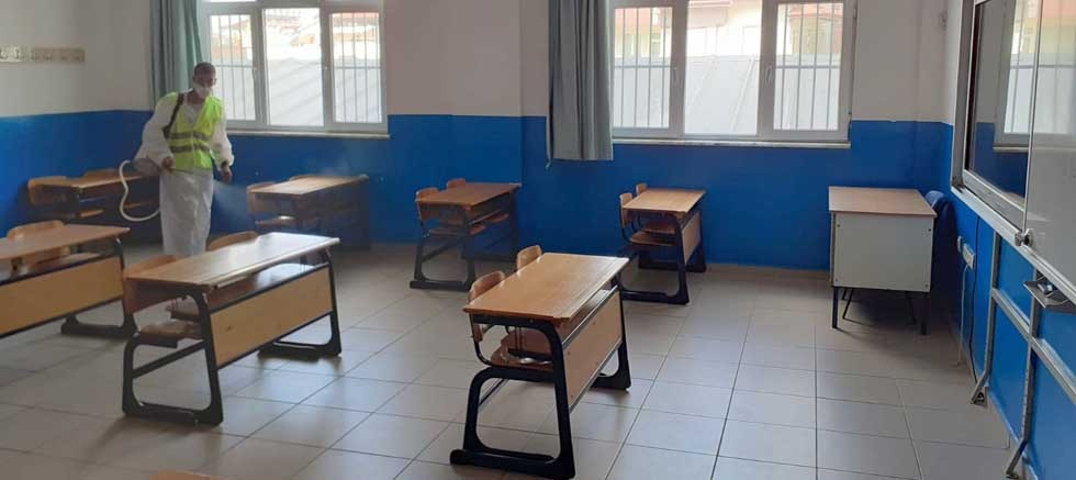 Manavgat Belediyesi, bu hafta sonu Yükseköğretim Kurumları Sınavı (YKS) yapılacak okullarda dezenfekte işlemlerini tüm hızıyla gerçekleştiriyor.