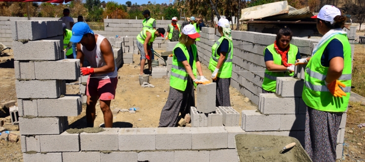 Manavgat Belediyesi’nin kadın çalışanları, gönüllülerin başlattığı “Bir Kümes, Bir Hayat” projesine destek vermek amacıyla kolları sıvayarak “Kadın Ustalar” ekibi oluşturdu. Manavgat Belediyesi’nin kültür, sosyal hizmetler, fen işleri, park bahçeler gibi müdürlüklerinde hizmet veren kadın çalışanlar, şalvarlarını giyip şapkalarını takarak gönüllü mimar Yasemin Aydan ve arkadaşlarınca yürütülen ahır, ağıl ve kümes yapım çalışmalarına katılmak amacıyla yangın atlatan Demirciler Mahallesi’ne gitti. Bir Kümes Bir Hayat Projesini yürüten gönüllüler, Manavgat Belediyesi’nin kadın çalışanlarıyla da ortak çalışma gerçekleştirerek inşaat çalışmalarını daha da hızlandırdı. Manavgat Belediyesi’nin çalışkan kadınları, sıcak havaya rağmen inşaat malzemelerini taşıyarak sıvama işlemlerini gerçekleştirdi. Yangınzede vatandaşlar, her zaman olduğu gibi şimdi de Manavgat Belediyesi’nin kadın çalışanlarının kendileri için seferber olduğunu dile getirerek, bu günleri asla unutmayacaklarını da ifade etti. Manavgat orman yangınlarının ilk gününden itibaren var gücüyle halkın yanında olduklarını belirten Manavgat Belediye Başkanı Şükrü Sözen, yangınzedelerin mağduriyetini gidermek için seferber olduklarını söyledi. Başkan Şükrü Sözen, “ Orman yangınlarından sonra gönüllü olarak Manavgat’ımıza gelen genç mimarlarımız, kent halkımıza dokunan işlere imza attı. Manavgat Belediye’mizin kadın çalışanları da bu anlamlı ve özel projeye dahil olarak mağdur olan vatandaşlarımızın yaralarını sarmak için seferber oldu. Tüm emekçi Manavgat Belediyesi’ndeki yol arkadaşlarımız kadınlarımıza yürekten teşekkür ediyorum. Manavgat halkımıza onlarla birlikte hizmet etmek benim için büyük gurur. İnsan yaşamına dokunan her yerde Manavgat Belediyesi olmaya devam edecektir” dedi.