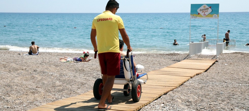 Manavgat Belediyesi’nin insan odaklı sosyal projelerinden biri olan Özgür Plajlar, faaliyete açıldı. Manavgatlı engelli vatandaşlar, belediyenin organizasyonuyla kendi plajlarına gelerek, gün boyunca deniz, kum ve güneşin keyfini özgürce yaşamaya başladı