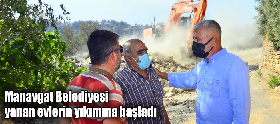 Manavgat Belediyesi, çeşitli mahallelerde yangın felaketine maruz kalarak kullanılamayacak duruma geldiği için Çevre ve Şehircilik Bakanlığı tarafından yıkımı istenen evlerin yıkım çalışmalarına başladı. Manavgat Belediyesi Başkanı Şükrü Sözen’in talimatı üzerine harekete geçen Belediye Fen İşleri Müdürlüğü ekipleri, 3 paletli ekskavatör, 3 kazıyıcı yükleyici, 2 yükleyici, 10 kamyon, 3 TIR ve toplam 25 kişilik ekiple, köylere ulaşarak yıkımlara başladı.