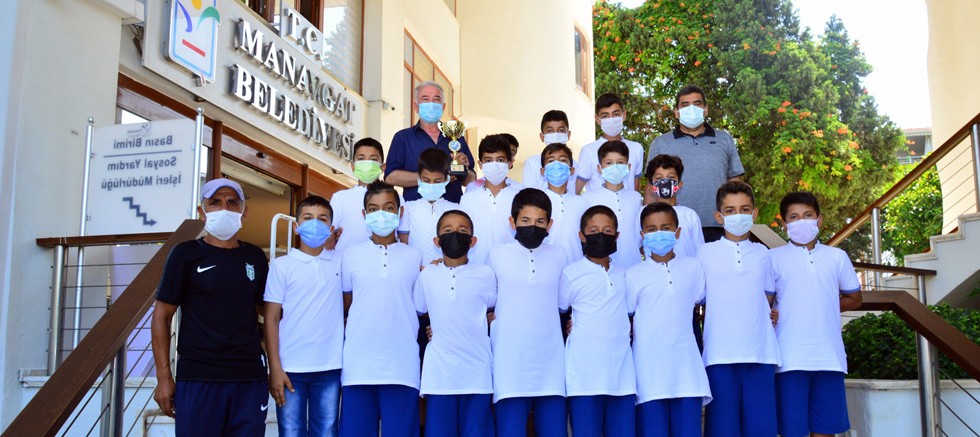 Manavgat Belediyesi Çolaklı Spor Klübü’nün U12 futbol takımı, İzmir- Kuşadası’nda düzenlenen, TFF Süper Lig ve TFF 1.Lig takımlarının yer aldığı 10 Numara Sportif Futbol Turvunası’nda 2’nci olma başarısı gösterdi. U12 futbol takımı, final mücadelesinde Bursa Merinosspor’a penaltılarda yenilerek şampiyona da 2’nci oldu. Turnuva dönüşünde kupalarıyla birlikte Manavgat Belediyesi’ni ziyarete gelen yıldız adaylarını, Manavgat Belediye Başkanı Şükrü Sözen’i temsilen başkan yardımcısı Halis Akkaya karşıladı. Başkan Yardımcısı Halis Akkaya, geçtiğimiz günlerde U14 takımının da aynı başarıyı göstermesinin ardından sonra gelen başarıyla bir kez daha gururlandıklarını söyledi. Akkaya, “ Manavgat Belediye Başkanımız Sayın Şükrü Sözen’in futbol akademilerimize verdiği desteğin, kupalar ve şampiyonluklarla taçlanması hepimizi oldukça gururlandırdı. Çocuklarımızı tebrik ediyor, Manavgat Belediyespor çatısı altında nice başarılar diliyorum” dedi.