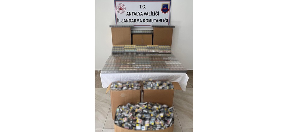 Antalya İl Jandarma Komutanlığı'ndan yapılan açıklamada şöyle denildi: "Antalya İl Jandarma Komutanlığınca yürütülen çalışmalar kapsamında, Manavgat Cumhuriyet Başsavcılığının talimatları doğrultusunda Manavgat ilçesinde Kaçak Tütün ve Mamüllerine ilişkin yürütülen çalışmalar kapsamında (D.M.) isimli bir işletmede yapılan aramada (10.000) paket Kaçak Sigara ele geçirilmiştir. Ele geçirilen malzemelerin piyasa değerinin yaklaşık (1.000.000 TL) olduğu değerlendirilmekte olup, olayla ilgili adli tahkikata başlanılmıştır.
