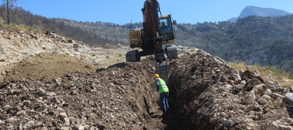 Manavgat ilçesinde çıkan büyük yangında zarar gören, sık sık patlayan, ekonomik ömrünü dolduran hatlar Büyükşehir Belediyesi ASAT Genel Müdürlüğü tarafından yenilenirken, içme suyu hattı bulunmayan bölgelerde de imalat çalışması gerçekleştiriyor. Bu kapsamda coğrafi olarak zor bir bölgede olan Manavgat ilçesi Sırtköy Mahallesi’nde içme suyu hattı olmayan mevkilere içme suyu boruları döşeniyor. ASAT ekipleri, Sırtköy sakinlerini suya kavuşturmak için engebeli ve taşlık alanda zor şartlar altında çalışmalarına aralıksız devam ediyor. Ekipler en kısa sürede imalat çalışmalarını bitirip vatandaşları kesintisiz ve sağlıklı içme suyuna kavuşturmayı hedefliyor.