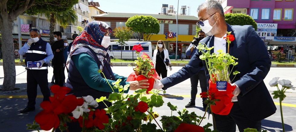 Başkan Sözen, bir ara yoldan arabayla geçen annelere de çiçeklerini hediye etti. Anneler gününü kutlayan Manavgat Belediye Başkanı Şükrü Sözen, “Çok güzel bir gün, sokakta gezen büyüklerimiz güzel. Onların bizlerle olmasını, sokakta gezmelerini özlemişiz. Bu gün anneler günü. Manavgat’ımız adeta şenlendi. Bizleri hayata getiren, yaşama hazırlayan, sevgiyi, şefkati, hoşgörüyü, ülkemize sahip çıkmayı öğreten annelerimizin günü bugün. Gönül istiyor ki, her gün anneler günü olsun. Annelerimiz bizim için her zaman değerli ve önemli. Bizler de bu günün anlamı gereği, annelerimize çiçek hediye etmek istedik. Uzun süredir evlerinde kapalı kalan büyüklerimizi sevindirmek istedik. Çiçeklerimizin bir kısmını kendi seralarımızda ürettik, bir kısmını da satın aldık. Diledik ki, annelerimiz evlerinde bu çiçeklere baksınlar, büyütsünler. Amacımız annelerimize olan sevgimizi ifade edebilmek. Annelerimizden manevi güç almak bizi umutlandırıyor. İnşallah bu sıkıntılı süreç geçecek. Biz yine hep beraber güzel günler göreceğiz. Dağıtımımızda sosyal mesafe kurallarına uymaya gayret ettik. Tüm annelerimizin gününü bu vesileyle tekrar kutluyor, aileleriyle birlikte mutlu, güzel yarınlar diliyorum” dedi.