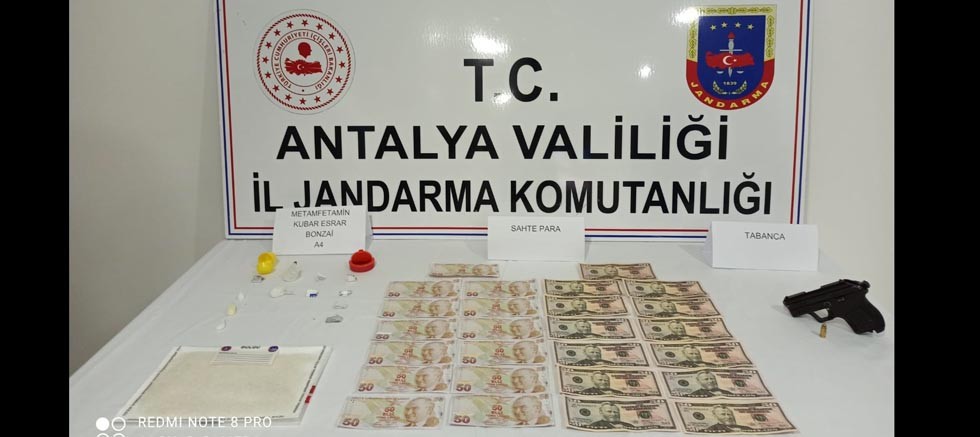 "Manavgat Cumhuriyet Başsavcılığı koordinesinde; Antalya İl Jandarma Komutanlığı KOM.Şb.Md.lüğü ve Manavgat Kumköy J.Krk.K.lığı Asyş timlerince Manavgat Turizm bölgesinde uyuşturucu madde ile mücadele kapsamında yürütülen çalışmalar neticesinde yerli ve yabancı turistlere uyuşturucu madde satışı yaptığı tespit edilen C.P., D.S. ve U.T. isimli şahısların Antalya ilinden getirdiği uyuşturucu maddeyi Ilıca mahallesindeki kaldıklari evde sakladıkları tespit edilmesi üzerine yapılan operasyon ile şüpheliler yakalanmıştır.Bahse konu evde adli makamlardan alınan arama kararına istinaden yapılan aramada;