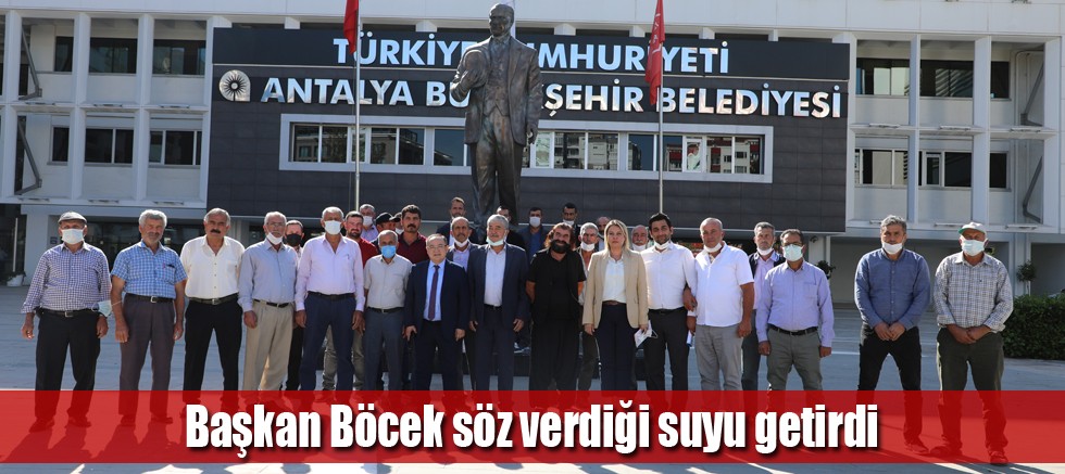 Antalya Büyükşehir Belediye Başkanı Muhittin Böcek, üreticiye verdiği bir sözü daha hayata geçirdi. 40 yıldır mahallerinde su sıkıntısı yaşadıkları için tarım yapamayan ve göç veren Manavgat Taşağıl -Çardak bölgesi halkını suyla buluşturacak sulama suyu projesi tamamlandı. Yöre halkı temsilcileri hem teşekkür etmek hem de açılış hazırlıklarını görüşmek üzere Büyükşehir Belediyesini ziyaret etti.