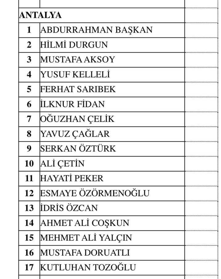 Milliyetçi Hareket Partisi (MHP) diğer illerle birlikte Antalya'nın milletvekili aday listesi belli oldu.