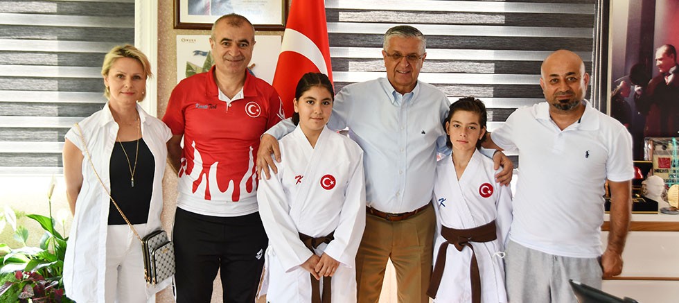 Kemer Belediyesi’nin milli karatecileri, 28. Balkan Çocuklar Karate Şampiyonası öncesi Kemer Belediye Başkanı Necati Topaloğlu'nu makamında ziyaret etti.