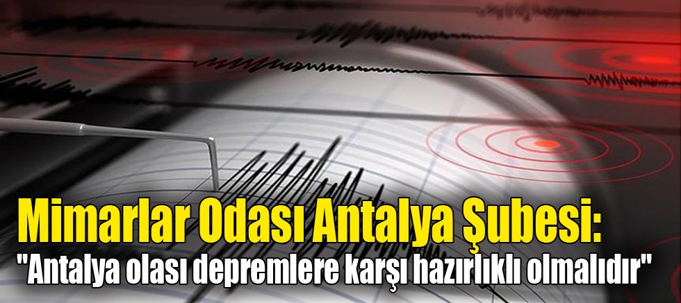 Mimarlar Odası Antalya Şubesi, Antalya'nın olası depremlere karşı hazırlıklı olmadığını belirterek yazılı bir basın açıklaması yayınladı. Açıklamada şöyle denildi: