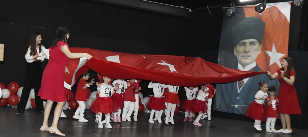 Saygı duruşunda bulunulmasının ardından İstiklal Marşı’nın okunmasıyla başlayan programda minik öğrenciler öğretmenleriyle hazırladıkları gösterileri sundu.