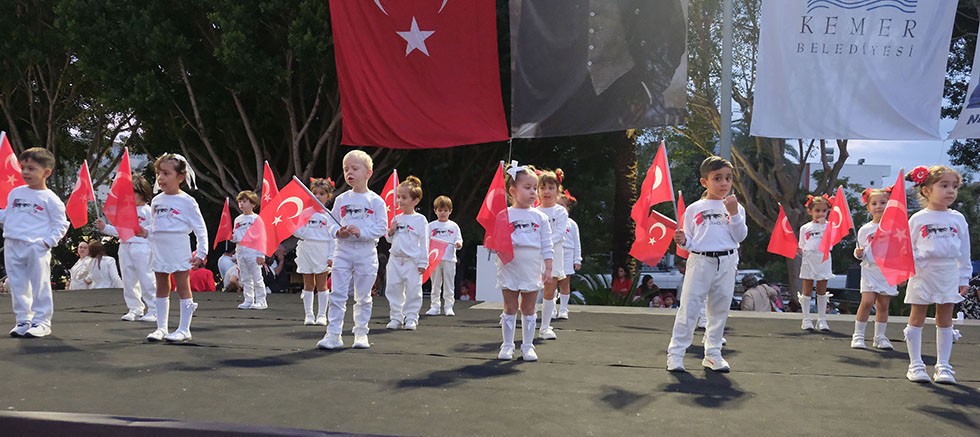 Kemer Belediyesi Ülker-Orduvar Akman Kreş ve Gündüz Bakımevi'de eğitim gören minik öğrenciler, 29 Ekim Cumhuriyet Bayramı kutlamaları kapsamında gösteri sundu.