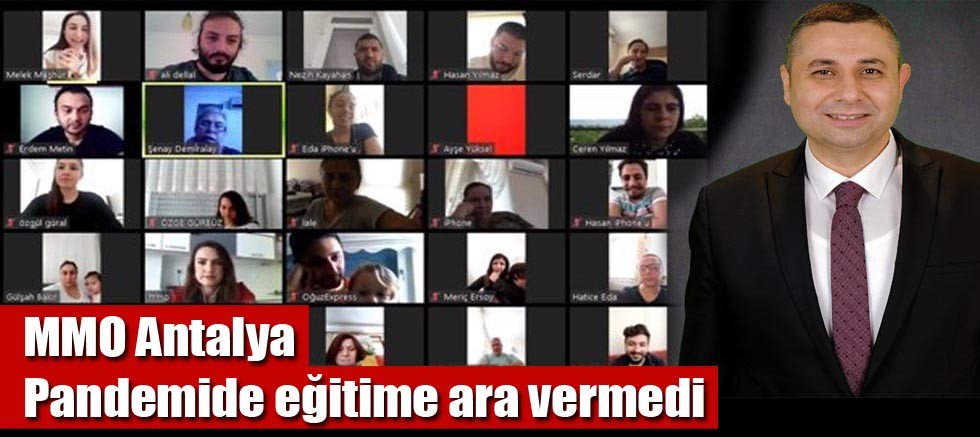 Covid 19 dolayısıyla ülkemizde ve dünyada birçok kurumun uzaktan çalışma ve uzaktan eğitim sistemine geçmek zorunda kaldığını belirten MMO Antalya Şube Başkanı Doç. Dr. İbrahim Atmaca, Oda olarak webinar olarak adlandırılan online eğitimlere hızlı bir adaptasyon sürecinin ardından hemen geçtiklerini ifade ederek, ‘Genel merkezimiz ve diğer Şubelerimiz ile işbirliği yaparak üyelerimizin bu süreçte mesleki gelişimlerine katkı sunacak birçok eğitim verdik. Hemen her gün verdiğimiz bu eğitimlerimize hız kesmeden pandemi süresince devam edeceğiz” diye konuştu.