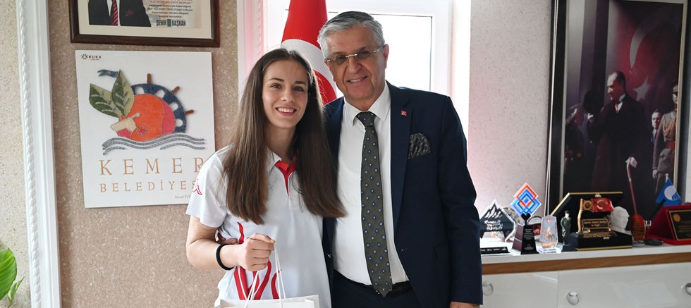 Başarılı sporcu, kendisine verdiği desteklerden dolayı Kemer Belediye Başkanı Necati Topaloğlu’nu ziyaret etti.